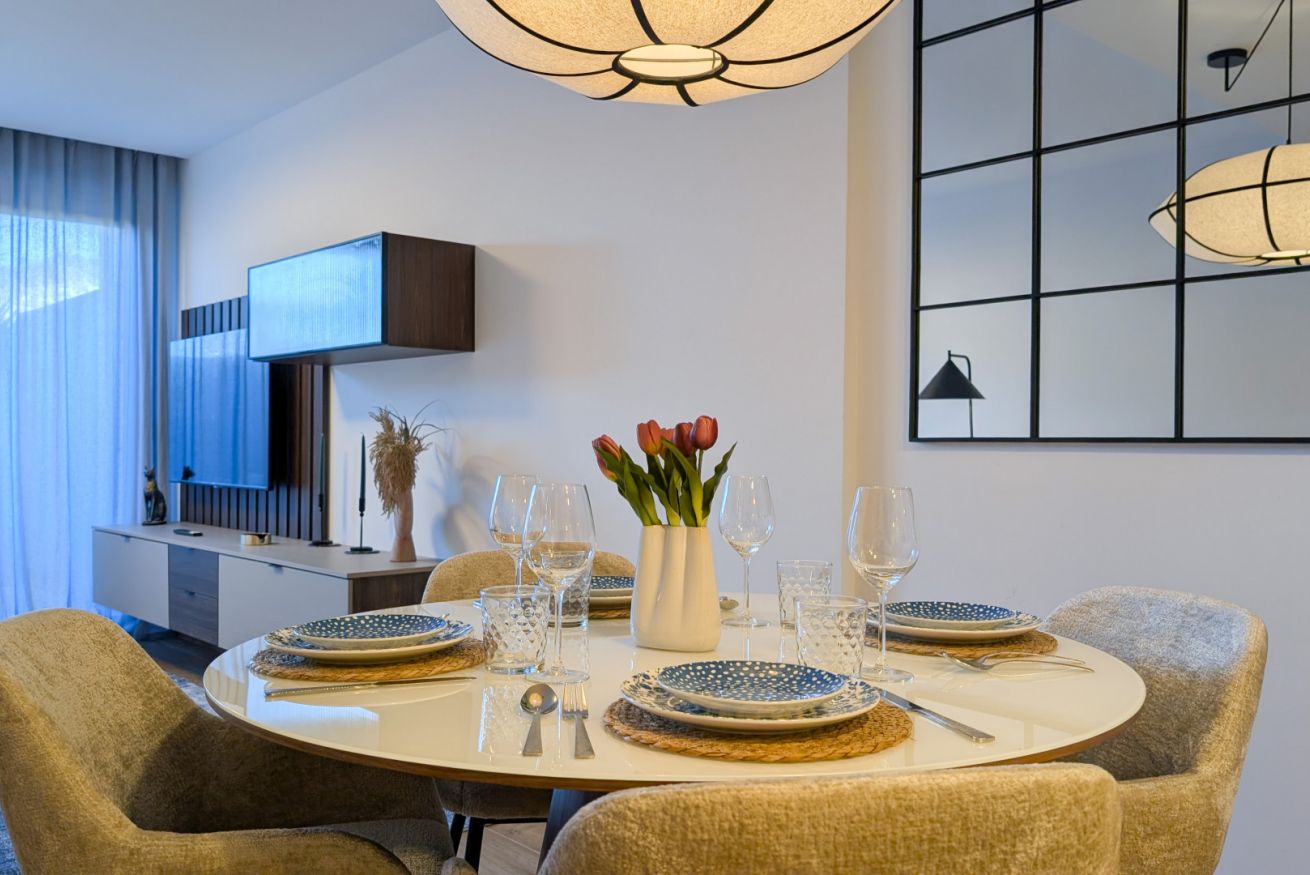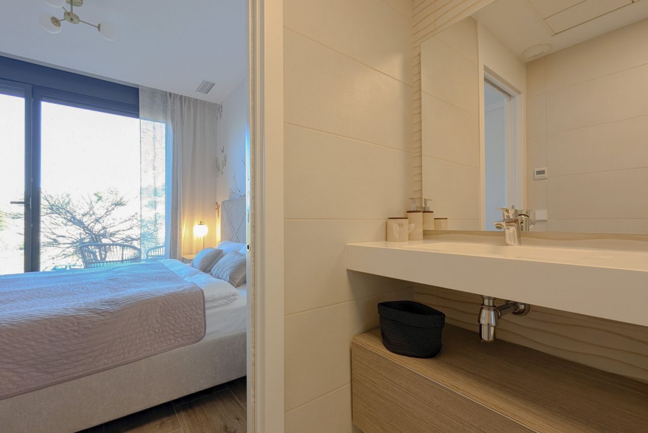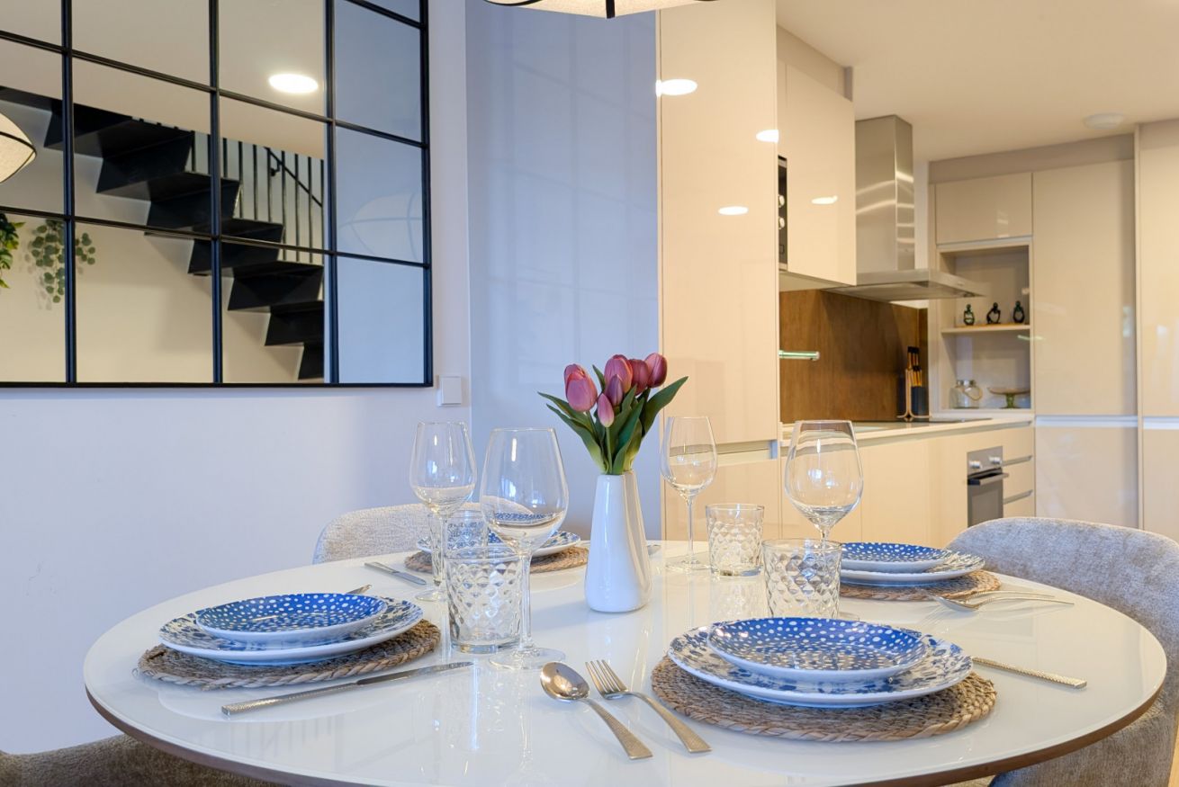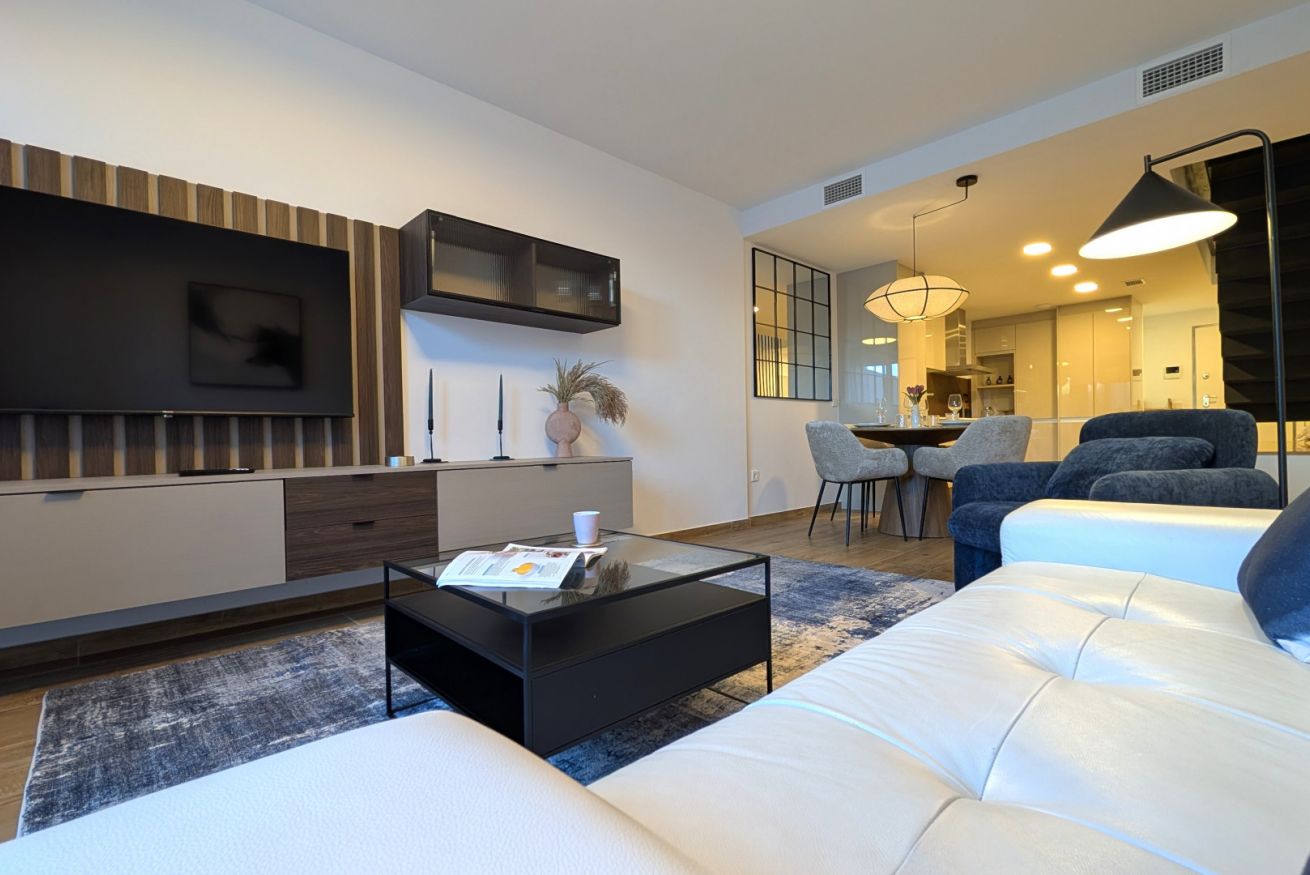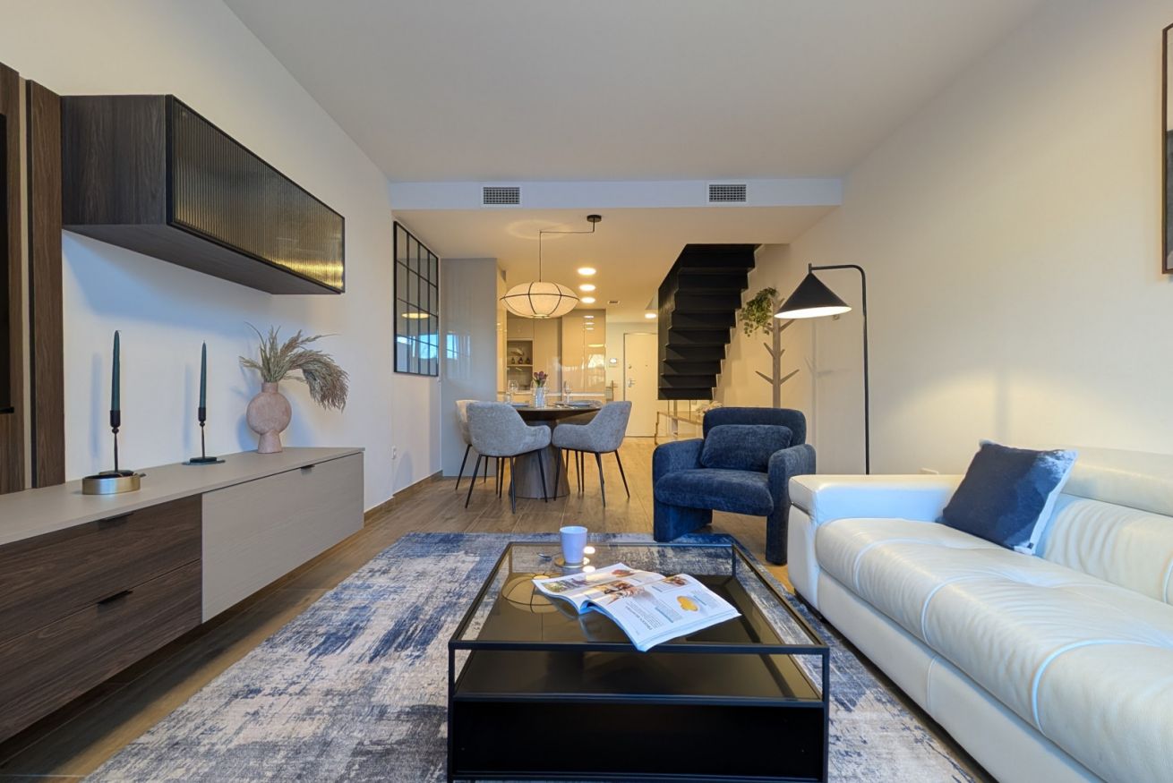 Disfrute de una estancia inolvidable en Villajoyosa, en una zona moderna y tranquila famosa por su parque de eucaliptos. Este exclusivo dúplex con entrada independiente se distribuye en dos plantas diseñadas para el máximo confort. En la planta baja, encontrará un salón con zona de comedor, una cocina totalmente equipada y una amplia terraza con acceso al exterior. La planta superior cuenta con dos dormitorios y dos baños (uno con ducha y otro con bañera), destacando el dormitorio principal con su propia terraza privada.