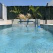 En el exterior, la villa ofrece un oasis de tranquilidad con su piscina privada, rodeada de tumbonas, vegetación y una cuidada zona de chill out donde relajarse bajo el sol o al atardecer. Es un lugar pensado para disfrutar al aire libre con total privacidad.