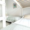El dormitorio principal, con una cómoda cama de matrimonio, es tu remanso de paz tras un día de sol y mar. Las otras dos habitaciones, con literas amplias y funcionales, están pensadas para ofrecer el mismo descanso y bienestar, ideales para familias o grupos de amigos que desean compartir momentos sin renunciar a la intimidad.