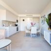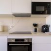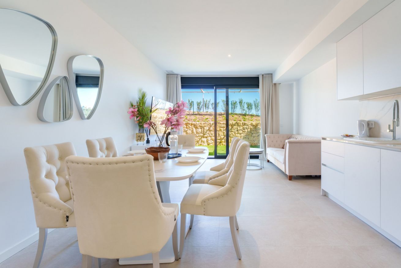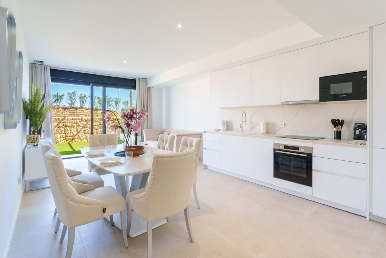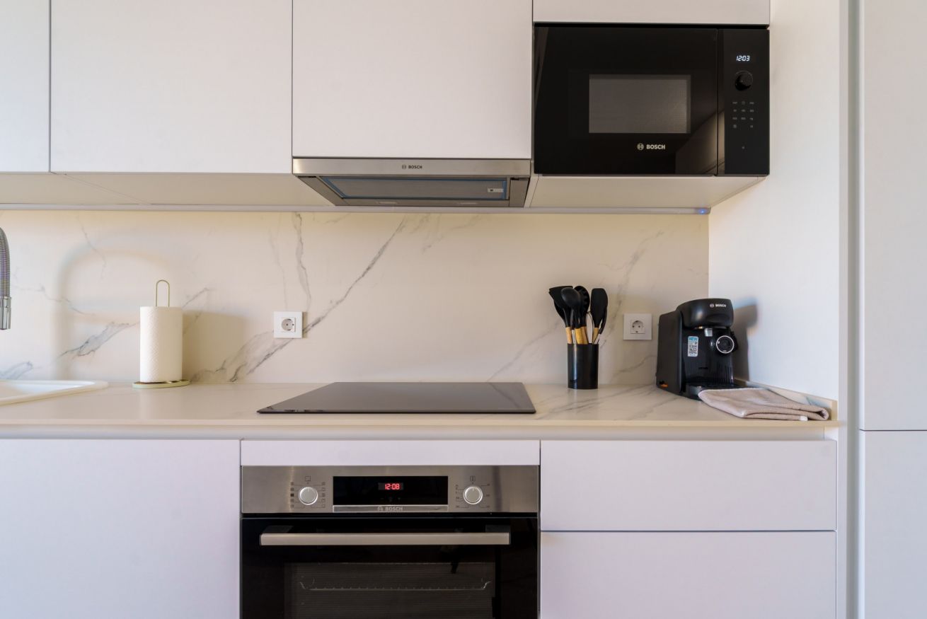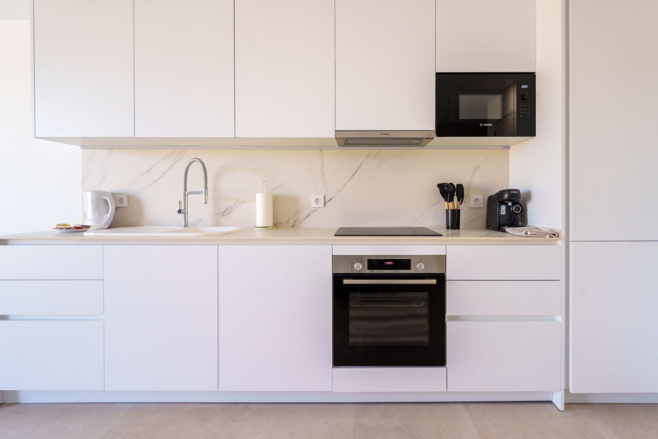La cocina se convierte en un lugar de inspiración culinaria. La sencillez de sus formas y la comodidad moderna invitan a rituales pausados: aquí, el aroma del café recién hecho y las notas intensas del aceite de oliva suenan como un himno a los placeres sencillos pero vibrantes de la vida.
