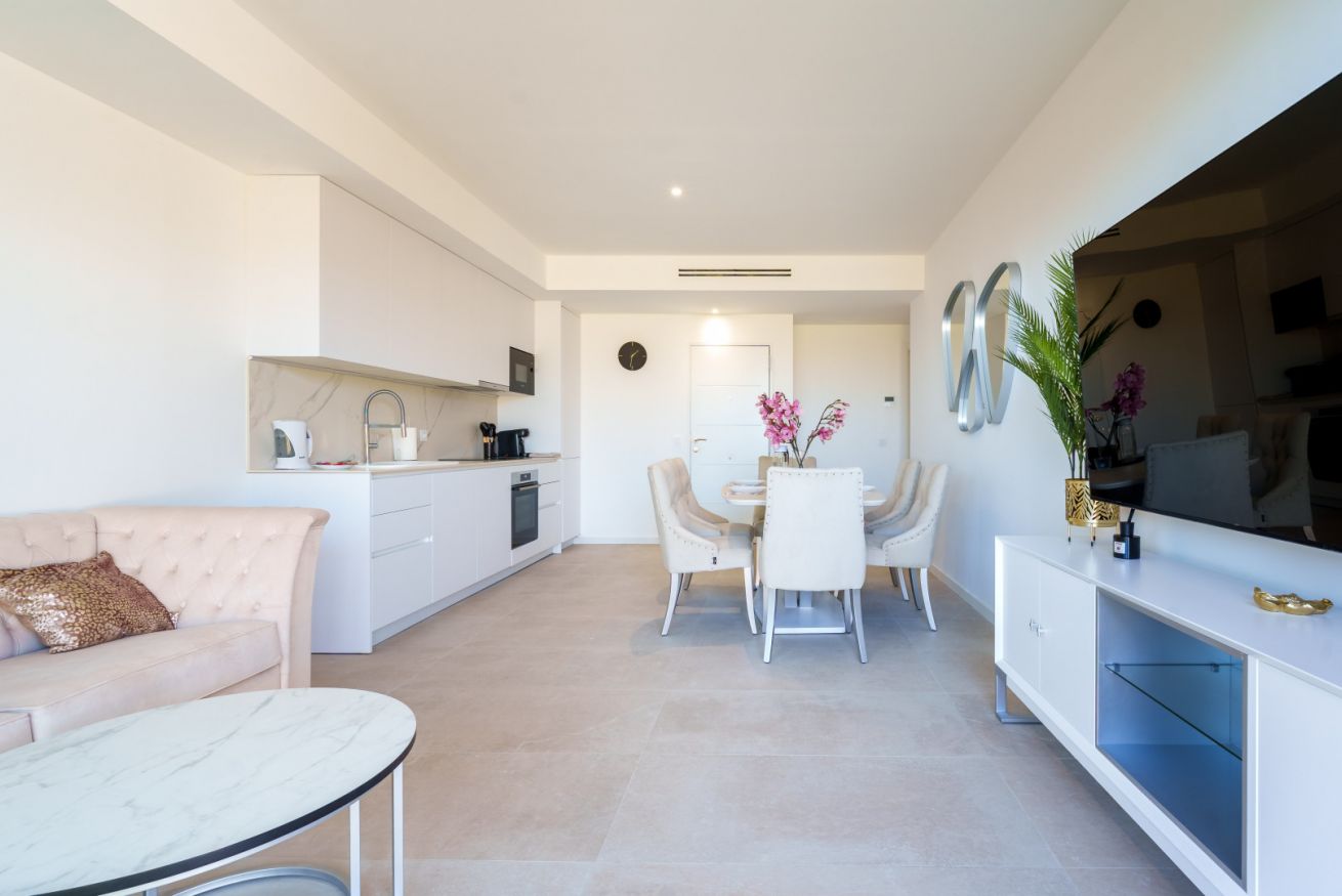 Un apartamento en el complejo residencial Camporosso es más que una simple dirección; es la filosofía encarnada del estilo de vida mediterráneo, donde la arquitectura moderna mantiene un diálogo continuo con la naturaleza virgen. Aquí, el ajetreo se detiene, dando paso a un pausado ritmo vacacional y a una estética de calma.