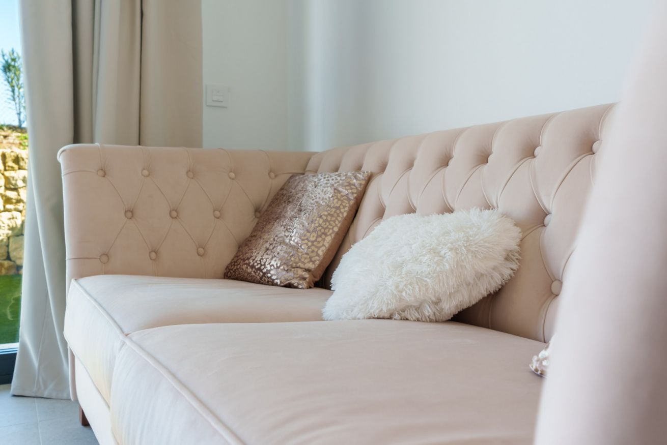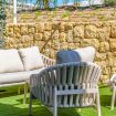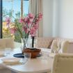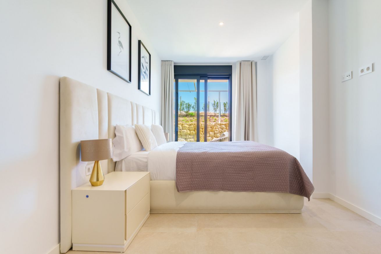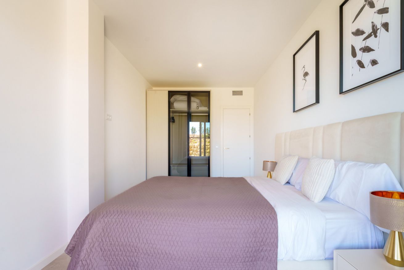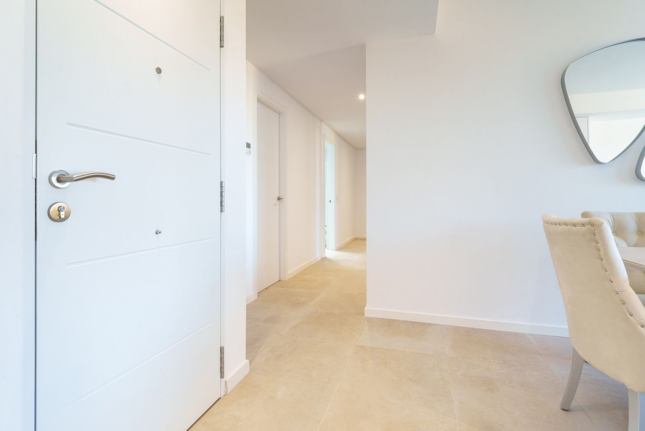 El corazón de la casa es el salón. Está creado para momentos de comunicación sincera y descanso profundo. Desde aquí, el espacio se impregna del aliento salino del mar, mientras que por las tardes el cielo sobre Finestrat se transforma en un lienzo vivo, teñido de tonos oro fundido y rosa empolvado. Es el momento de la auténtica magia del atardecer mediterráneo.