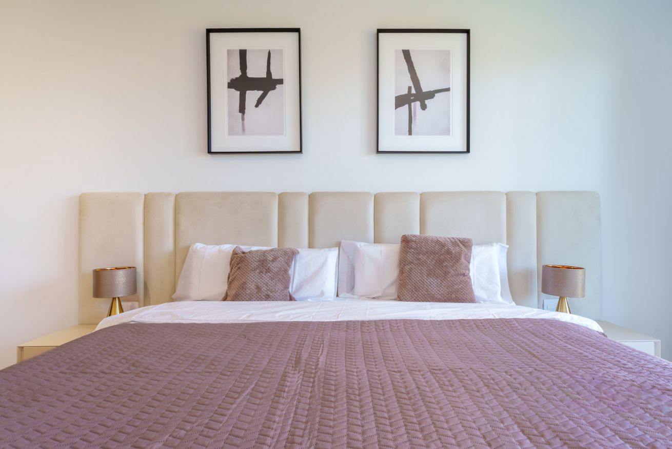 El espacio privado cuenta con dos majestuosos dormitorios. Son remansos de paz donde predominan el frescor y la serenidad. Los rayos matutinos despiertan suavemente a un nuevo día, y el aire nocturno, impregnado de aromas de pino y sal, regala un sueño profundo y reparador bajo el compás de la noche sureña.