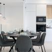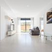 El amplio y luminoso salón te recibirá con su elegante decoración y su ventanal de suelo a techo, que baña la estancia con luz natural y te conduce a la terraza privada. Aquí, el tiempo se detiene mientras disfrutas de un café matutino o una copa de vino al atardecer, respirando la suave brisa mediterránea.