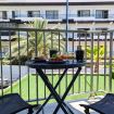 Este apartamento te enamorará desde el primer momento que cruces la puerta. Te recibe un salón de decoración moderna y concepto diáfano, inundado de luz natural que entra a raudales por los ventanales. Aquí, podrás relajarte después de un día disfrutando de la arena dorada de la preciosa Playa de Poniente, situada a menos de un minuto del apartamento.