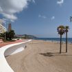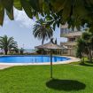 Desde el salón, se accede a una terraza acristalada encantadora, un rincón íntimo y luminoso desde donde se ve el cielo despejado, las palmeras, la piscina comunitaria brillando al sol y, al fondo, el perfil del mar en el horizonte. Está completamente amueblada y es perfecta para un desayuno pausado, una copa al atardecer o una charla bajo las estrellas con la ciudad como telón de fondo.