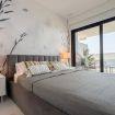 Desde la terraza privada, el espectáculo es simplemente sobrecogedor: el mar en primer plano, el cielo que se tiñe de fuego al caer la tarde y el skyline de Benidorm dibujándose con elegancia frente a ti. Es ese rincón donde el tiempo se detiene, donde una copa de vino se convierte en el preludio perfecto de una noche mágica.