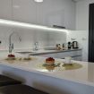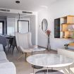 La cocina abierta, equipada con los últimos adelantos en electrodomésticos, es un santuario culinario donde la creatividad fluye tan fácilmente como la vista al mar. El salón, amplio y lleno de luz, es un oasis de serenidad con vistas panorámicas que se extienden hacia el horizonte azul.
