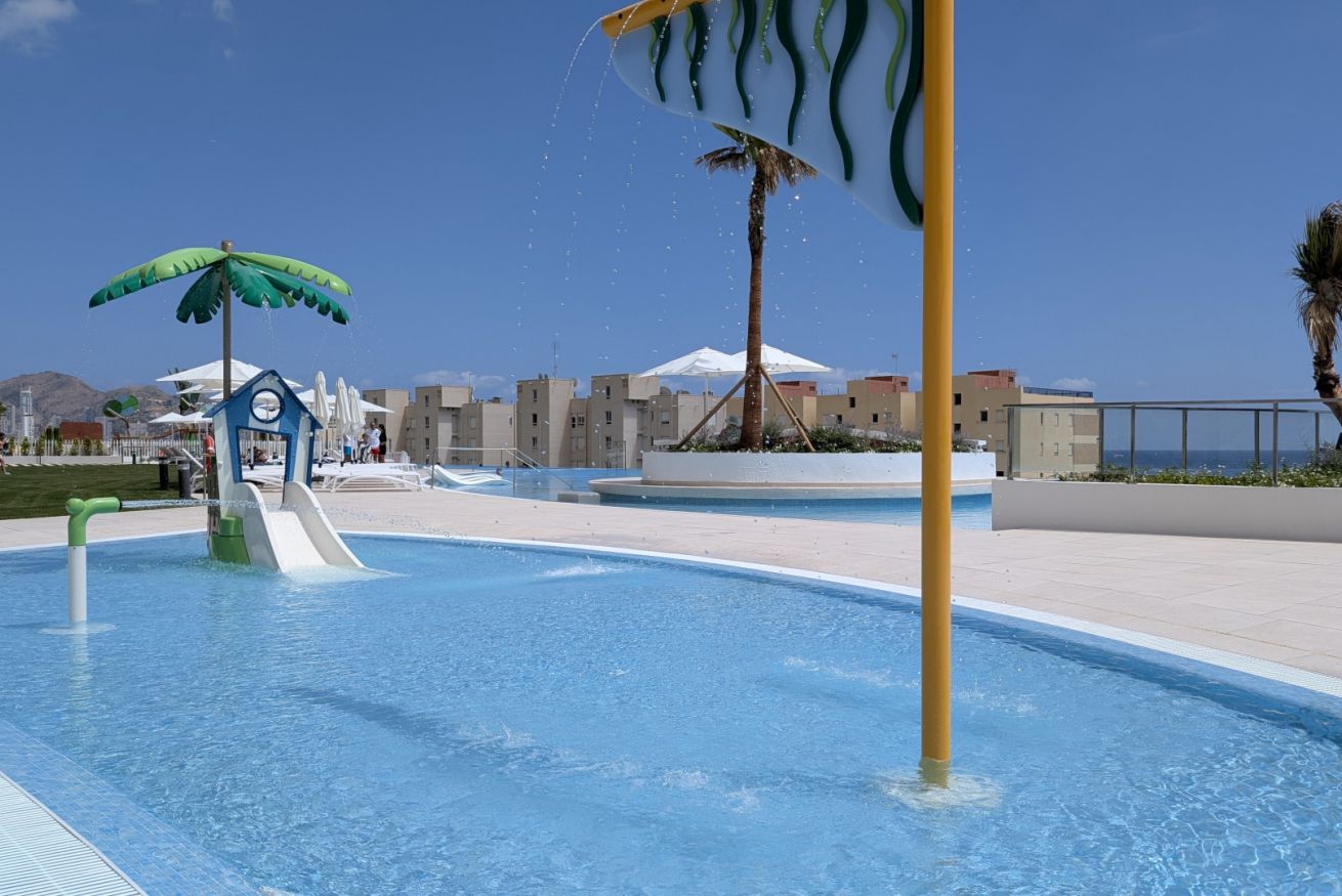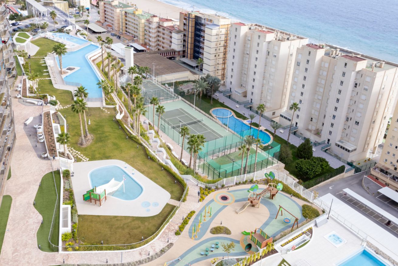 Pero la verdadera magia está en el complejo donde se encuentra. podréis disfrutan de varias piscinas, una de ellas climatizada, pistas de tenis para los amantes del deporte, una sauna y un gimnasio que invitan a cuidar cuerpo y mente, y un parking privado que garantiza comodidad y seguridad durante toda la estancia. Todo está pensado para que cada momento de tus vacaciones sea perfecto.