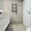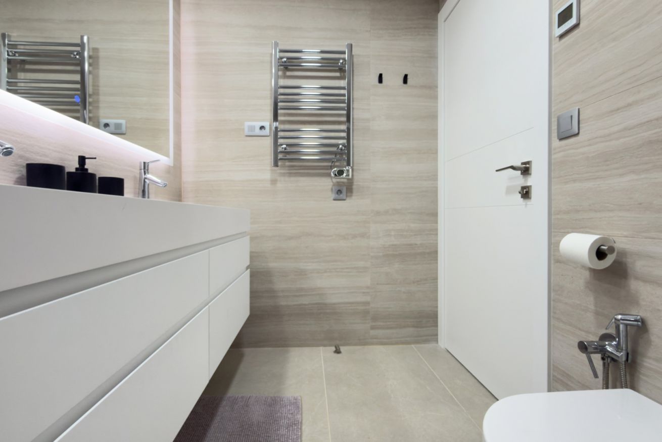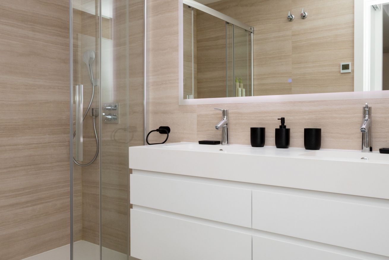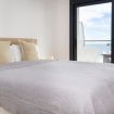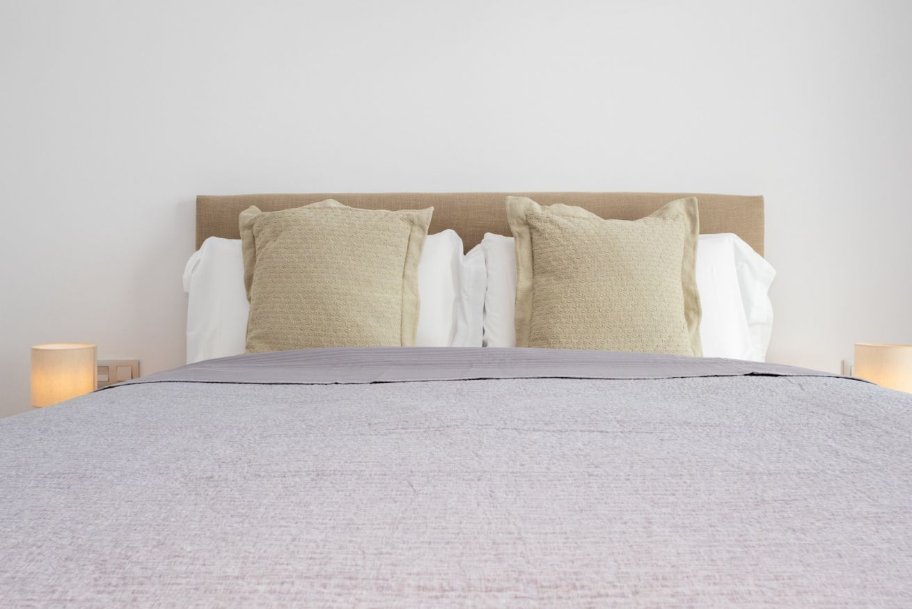 El dormitorio, íntimo y acogedor, está pensado para envolver a sus huéspedes en calma. La cama amplia, vestida con ropa de cama suave, invita a descansar profundamente después de un día de playa o de paseo por la ciudad. El baño, moderno y funcional, ofrece un espacio elegante donde cada ducha se convierte en un momento revitalizante.