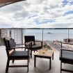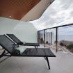 En la terraza hay cómodos muebles de mimbre: una mesa, sillones, que permite a los huéspedes disfrutar el aire libre con vista al mar.