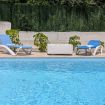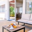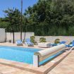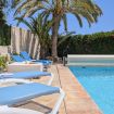 Pero sin duda, el alma de la villa está en su exterior. Un jardín privado lleno de vegetación mediterránea, una piscina que brilla bajo el sol y una terraza desde donde contemplar cómo se funden el cielo y las montañas. Aquí todo está pensado para el disfrute: desayunos al aire libre, siestas a la sombra, cenas bajo un cielo estrellado y tardes interminables de desconexión total. Es ese tipo de lugar que parece sacado de un cuento, pero que existe, y está esperándote.